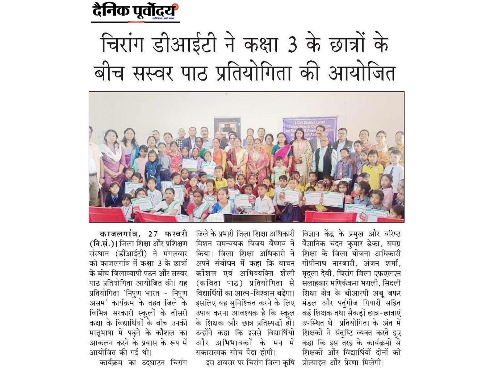 1 Day District Level Talent Search Competition on Reading & Poem Recitation under NIPUN ASOM 2025 held at DIET, Chirang on 25th February, 2025